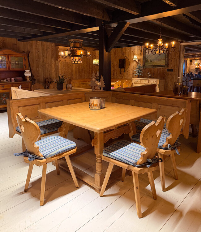 This characterful Alpine seating area is a rare and beautiful find for anyone seeking atmosphere and quality. The complete traditional Stube set from the Austrian Alps is constructed from solid wood.