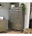Stoere vintage ladekast uit een voormalig militaire kazerne. de kast is voorzien van 24 metalen lades.